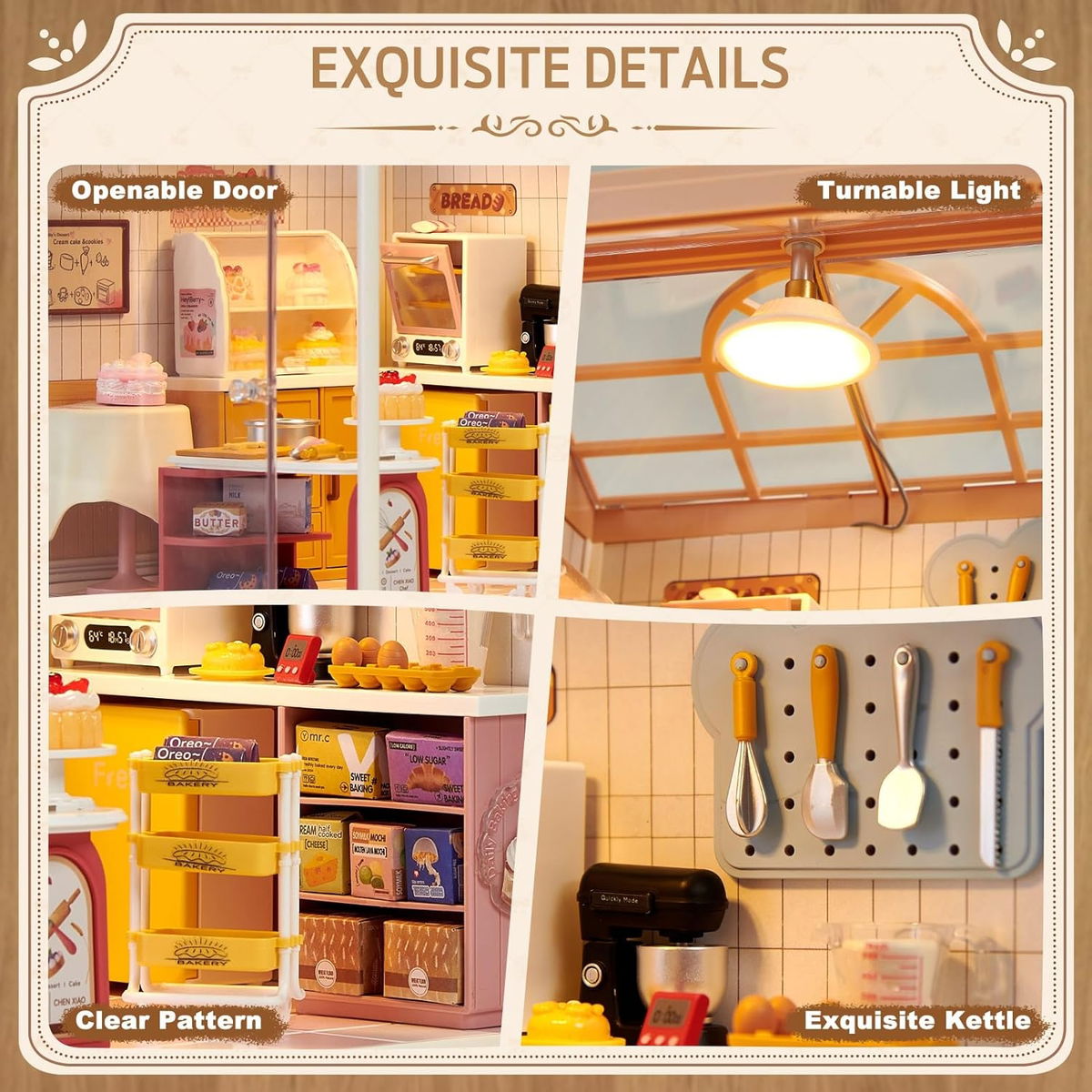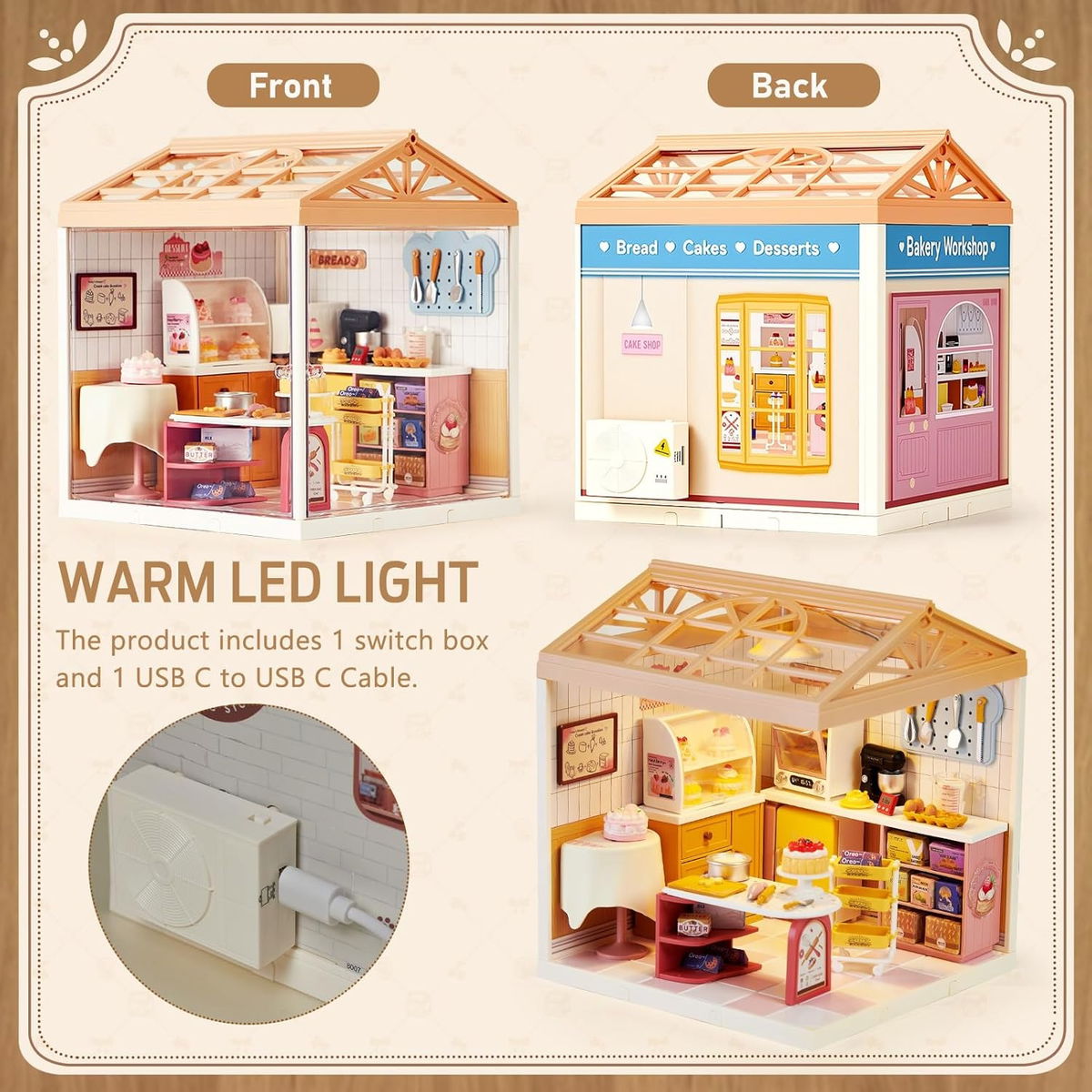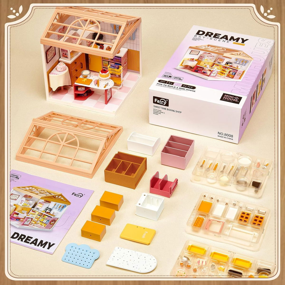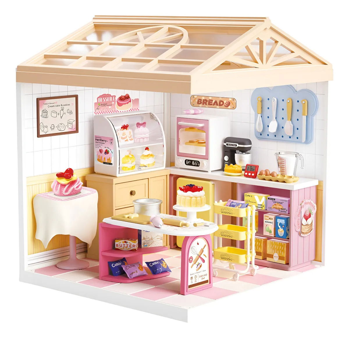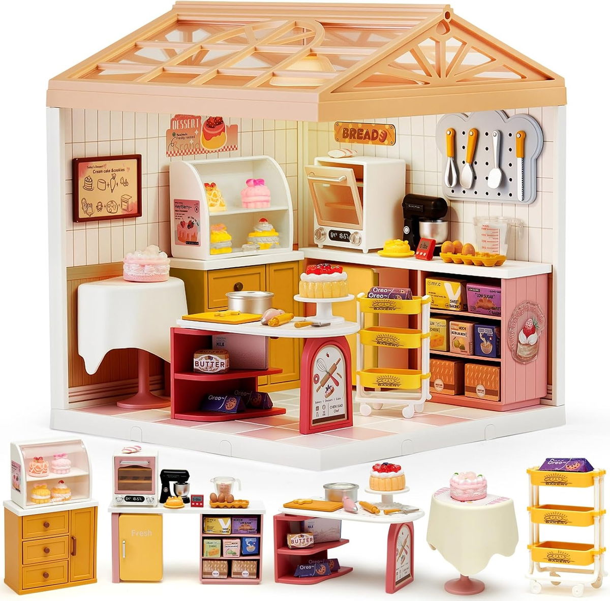 Kit Para Armar Mini Panadería Dreamy Mini House 94 Pcs. inc. Pasteles, Muebles, Accesorios y Luz.