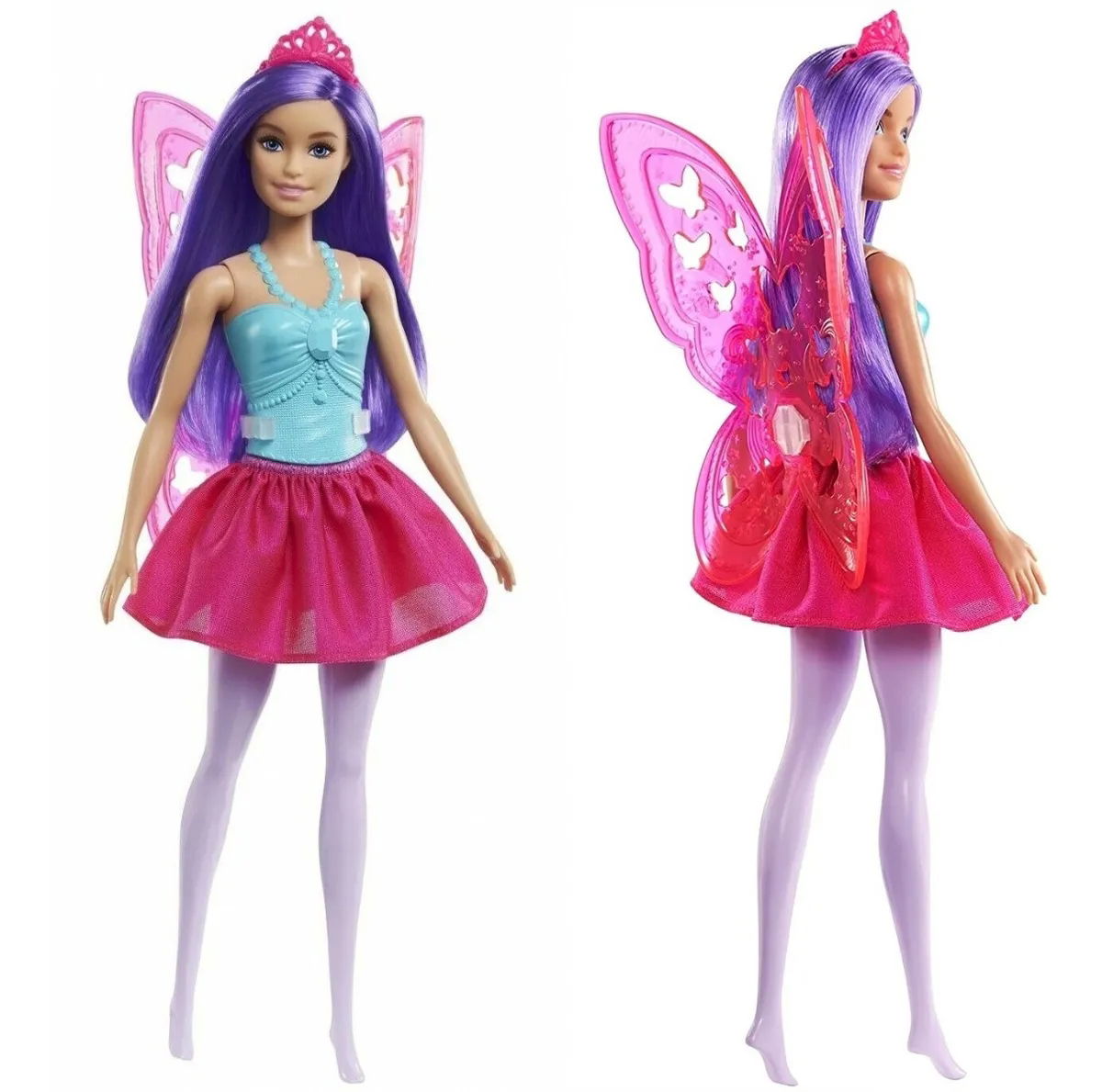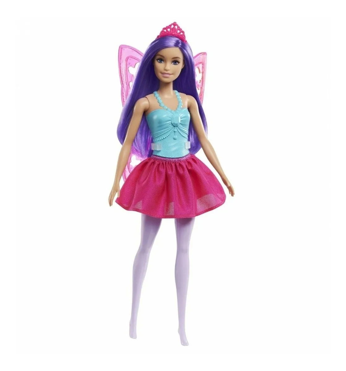 ¡Sumérjase en la narración con las muñecas de hadas de Barbie ™ Dreamtopia! Esta muñeca de hadas Barbie® inspira aventuras encantadas con un corpiño inspirado en gemas- medias pintadas y una falda de hadas extraíble para divertirse a la moda. Las alas de hada rosadas con clip con dulces recortes de mariposas ayudan a que la imaginación despegue- y una tiara rosa en su cabello púrpura vibrante le da el toque final a su apariencia.