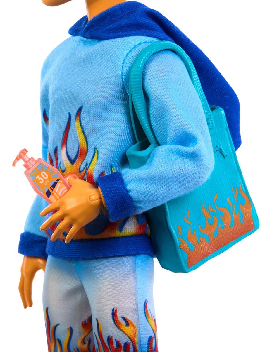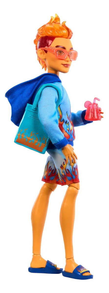 Heath Burns tiene mucho calor, por lo que unas vacaciones en la playa tomando sol son ideales para este muñeco Monster High. Está vestido para una escapada en Scare-adise Island con una sudadera con capucha de estampado de llama, shorts que combinan y zapatos. Con su bebida volcánica y una botella de protector solar FPS 30, el muñeco Heath Burns está preparado para su día relajante en el mar.