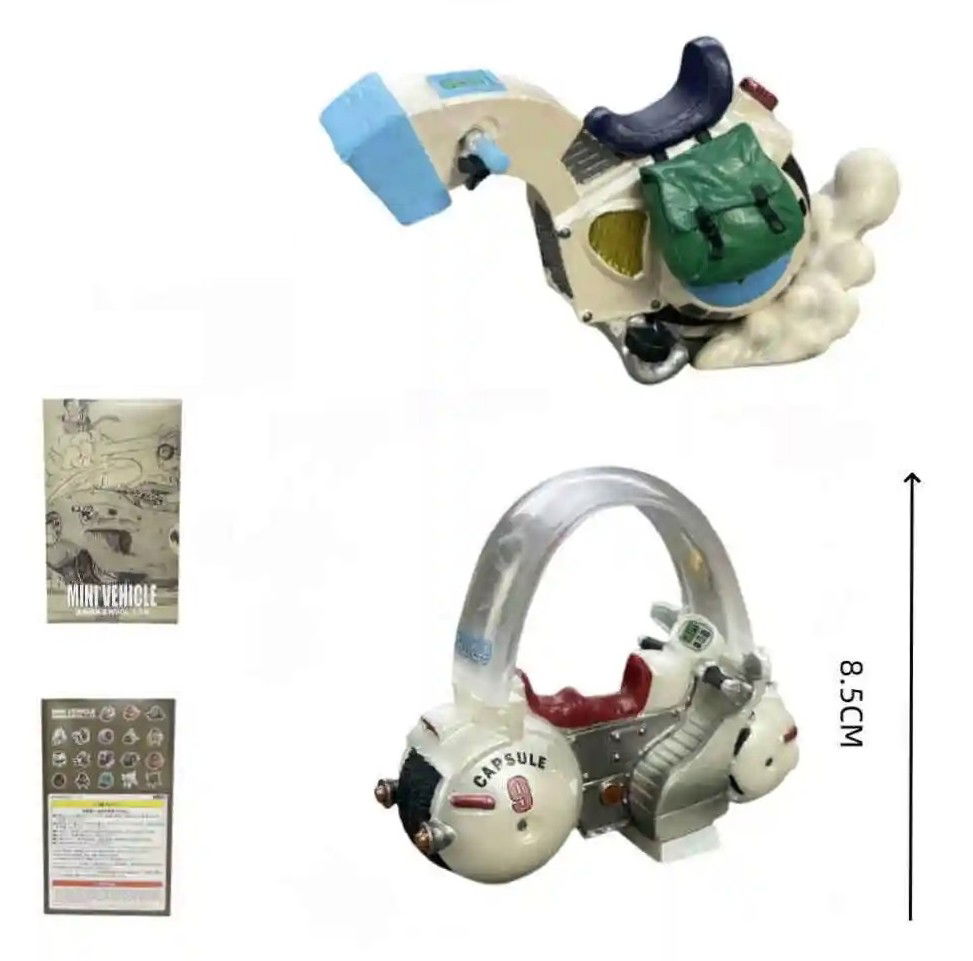 Sumérgete en el emocionante mundo de Dragon Ball con el Set de 2 Mini Vehículos - Vol 2. Este conjunto es ideal para los fanáticos de la icónica serie, ofreciendo una representación detallada de los vehículos que han acompañado a tus personajes favoritos en sus aventuras. Fabricados en PVC, estos vehículos son perfectos para exhibir en tu colección o para recrear escenas memorables de la serie.