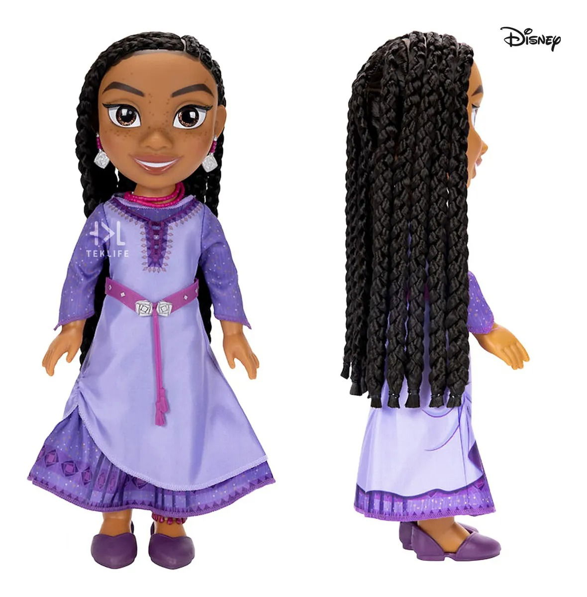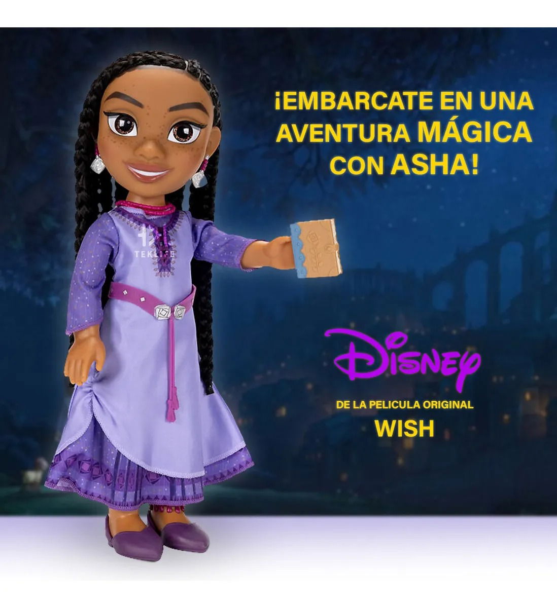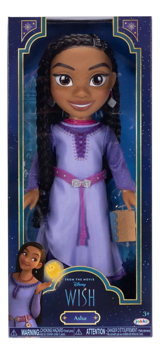 Celebra con la muñeca Asha Disney Wish Set De Juego Aventurera, inspirada en la nueva película animada de Disney WISH! Esta muñeca presenta un estilo de pelo trenzado a mano, cada una de las trenzas largas de Asha está diseñada a mano para un aspecto hermoso. Al igual que en la nueva película animada de Disney, Wish, la bella y valiente Asha viste su hermosa moda, accesorios de color púrpura y presenta su tradicional peinado trenzado, peinado a mano. Asha también viene con su diario para que puedas llevarla a todos lados con sus deseos para hacer de cada día un viaje mágico.