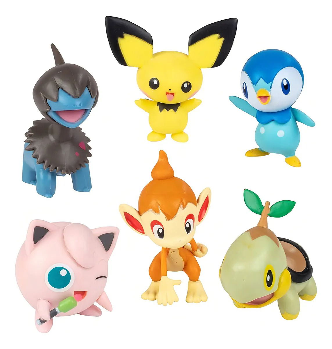 ¡Hazte con todos! ¡El juego Battle incluye figuras Pokémon de 4cm aprox de Pichu, Deino, Turtwig, Chimchar, Piplup, Jigglypuff !