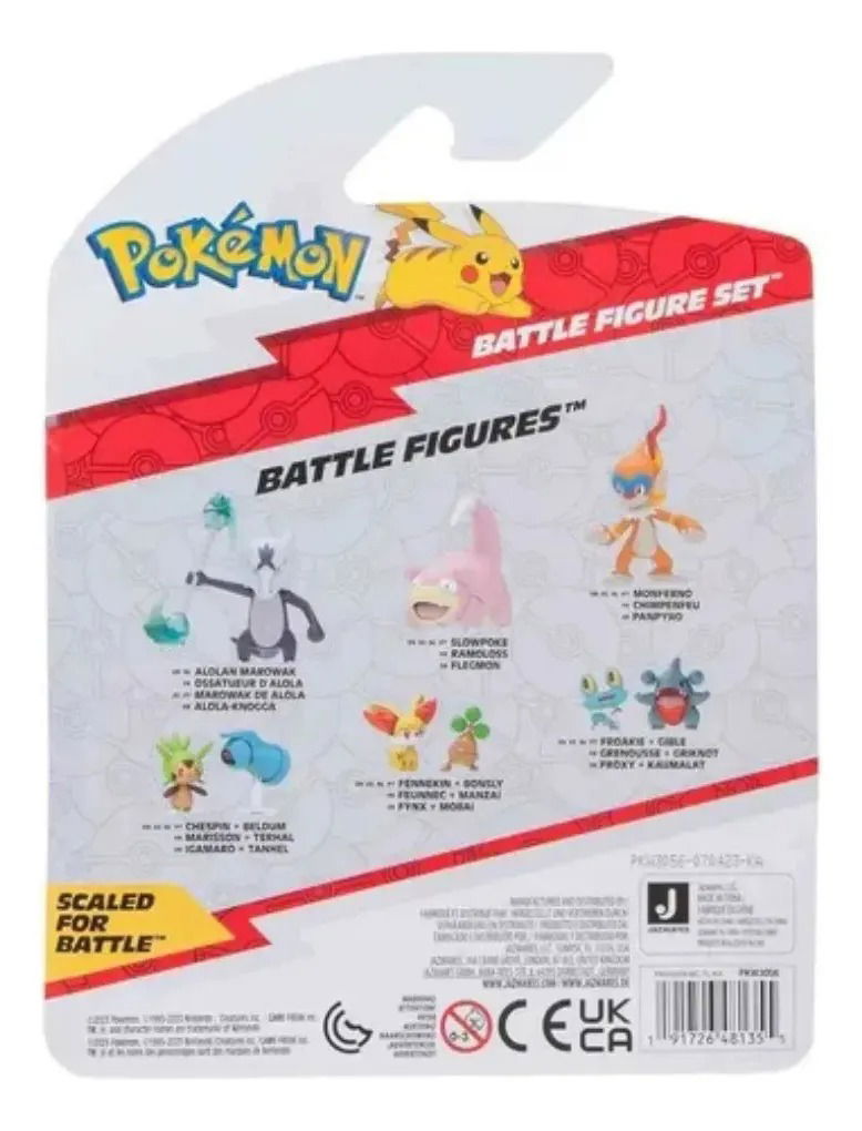 Eleva tu colección de Pokémon con el set de figuras 'Battle Ready Pikachu, Slowpoke y Litwick' de Jazwares. Estas figuras articuladas son ideales para aquellos apasionados del mundo Pokémon, ofreciendo un diseño elaborado y fiel a los personajes que todos conocen y aman. Cada figura está elaborada en plástico duradero, asegurando que sean tan resistentes como emocionantes. Recomendadas para mayores de 14 años, estas figuras son perfectas tanto para coleccionistas como para aquellos que desean recrear batallas épicas de sus aventuras favoritas. Pikachu, Slowpoke y Litwick están listos para la acción, listos para ser parte de tus historias y juegos. El arte y la atención al detalle en la fabricación hacen de este set un elemento imprescindible en tu colección.