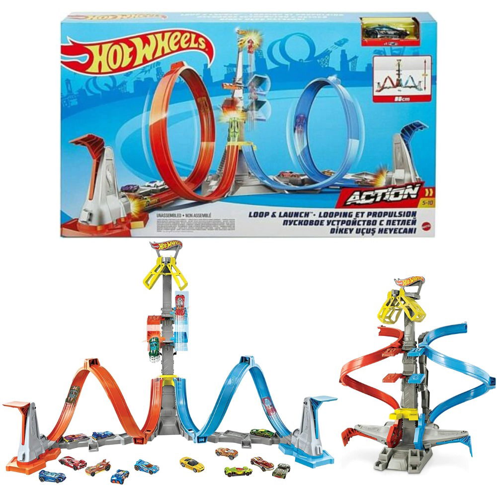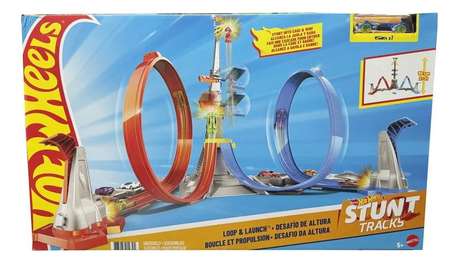 - El conjunto de pista Loop & Launch de Hot Wheels es la carrera hacia la jaula del ganador. Los coches corren por las pistas y, a través de una espiral que los propulsa hasta una jaula, pueden alcanzar hasta 60 cm en el aire.