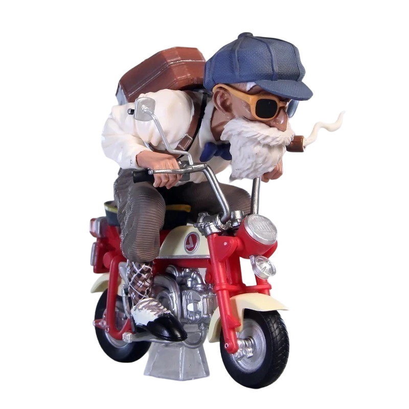 Descubre la exclusiva figuras de el Maestro Roshi en motocicleta. Una fusión magistral de arte y detalles intrincados que capturan la esencia de Dragon Ball. Con colores vibrantes y formas dinámicas, cada pieza va más allá del coleccionismo tradicional, ofreciendo una experiencia única que une la nostalgia con la maestría artística. Edición limitada, estas figuras elevan tu colección a un nivel superior.