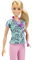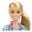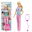 Características: Lleva un uniforme con blusa estampada, pantalones rosas, zapatos blancos y cola de caballo.