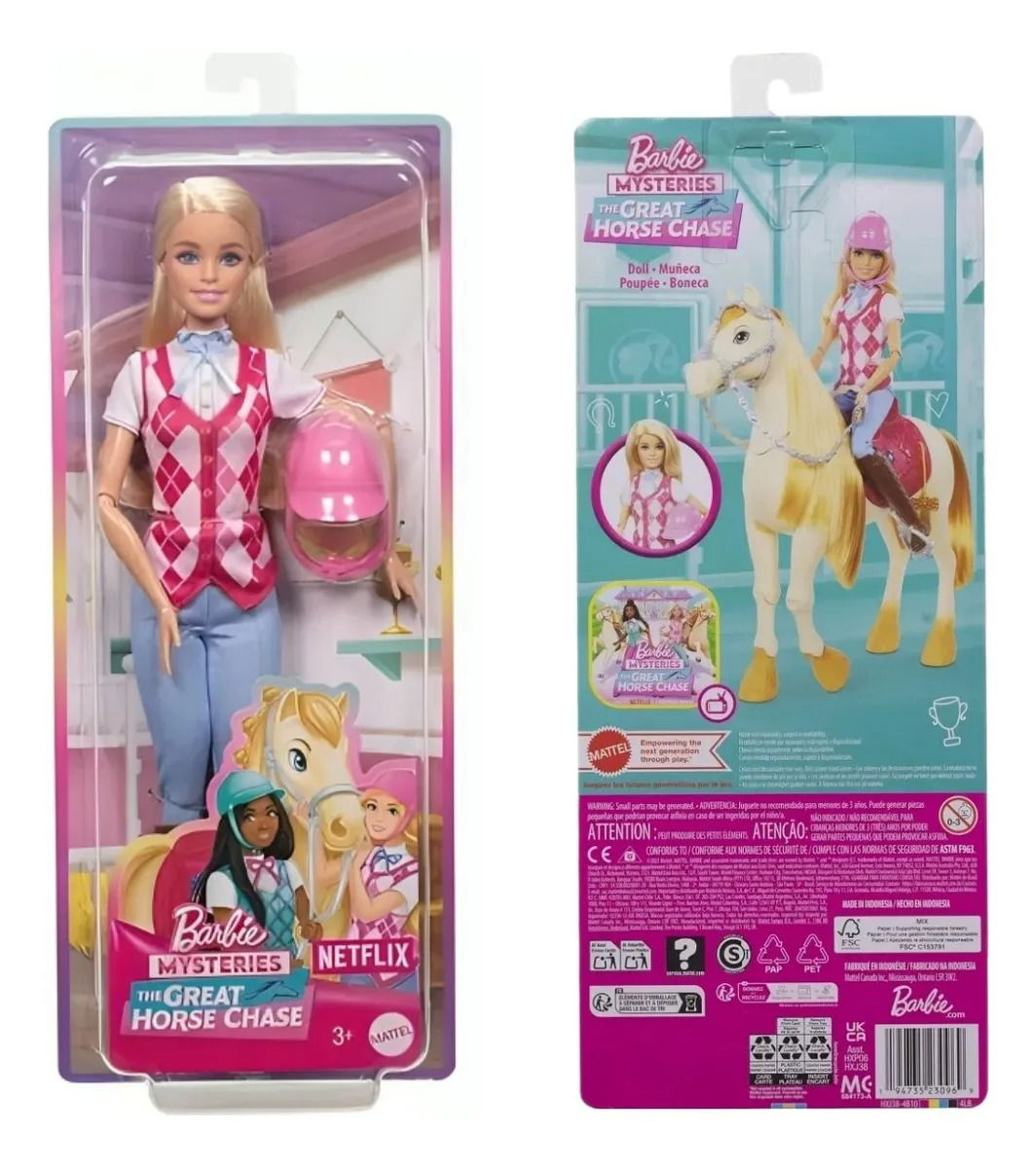 - Inspirada en la serie de Netflix “Barbie Mysteries: The Great Horse Chase”, la muñeca Barbie Malibu está lista para montar fuera de la pantalla y divertirse galopando.