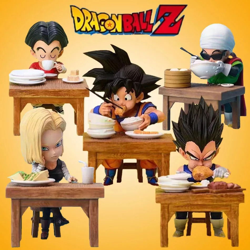 Estos modelos coleccionables de alta calidad, que capturan a los personajes en una escena de comedor, son perfectos para los fanáticos del anime. Hechas de PVC duradero, cada figura está finamente detallada para reflejar su personalidad, hasta sus posturas animadas para comer. Ideales tanto para niños como para coleccionistas, estas figuras de acción son excelentes regalos o piezas de exhibición para cualquier fanático de Dragon Ball Z.