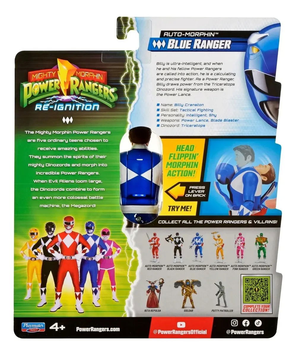 ¡Únete al equipo con el brillante y valiente Ranger Azul! Esta figura de acción del Ranger Azul de Mighty Morphin Power Rangers presenta detalles auténticos y articulación para vivir aventuras sin fin. Ya seas fan, coleccionista o un niño listo para la acción, esta figura es imprescindible en tu colección de Power Rangers.