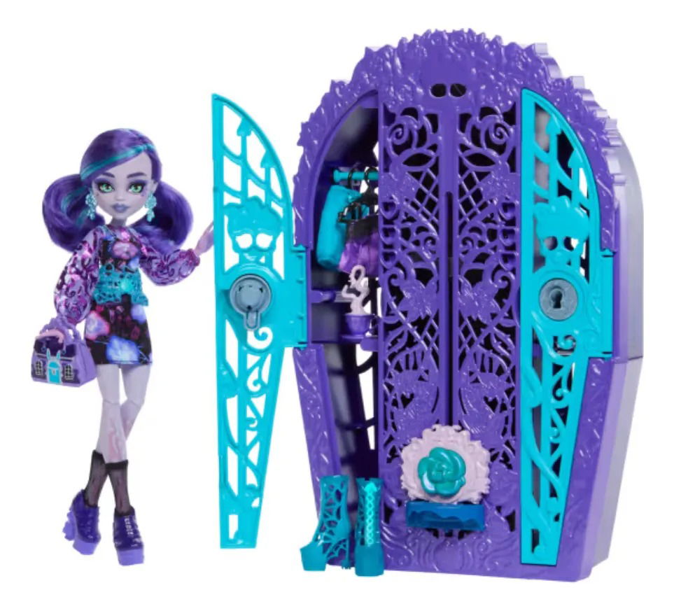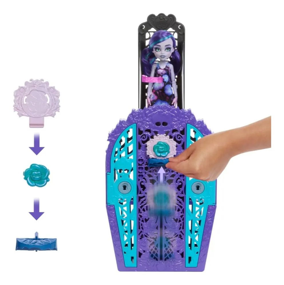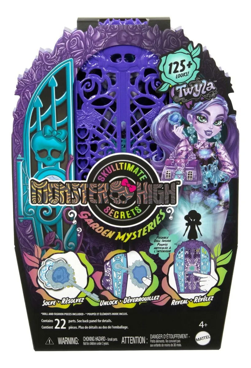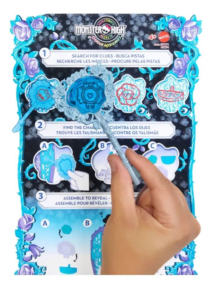 Resuelve el misterio, desbloquea las puertas de Monster High y revela una muñeca Monster High con Skulltimate Secrets: Garden Mysteries. Los niños pueden jugar a un detective espeluznante buscando pistas en el mapa con la llave de lupa "mágica". En el camino, descubrirán más de 19 sorpresas para una experiencia extraordinaria y misteriosa de unboxing en 3 espectaculares etapas: resuelve, desbloquea, revela. Una vez que termine el tiempo de juego, los niños de 4 años en adelante pueden guardar la muñeca, la ropa y los accesorios incluidos dentro del armario creeperific que es perfecto tanto para contar historias como para almacenamiento.