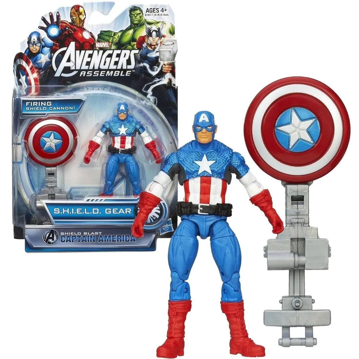 Prepara tus misiones de los Vengadores con el equipo de batalla de SHIELD y los superpoderes de tu figura de Capitán América con Escudo Explosivo! Esta figura de superhéroe patriótico incluye un lanzador en el brazo para que pueda golpear con su escudo a los enemigos de la justicia. ¡Tus batallas de los Vengadores no estarán completas sin el Capitán América y su escudo de largo alcance!