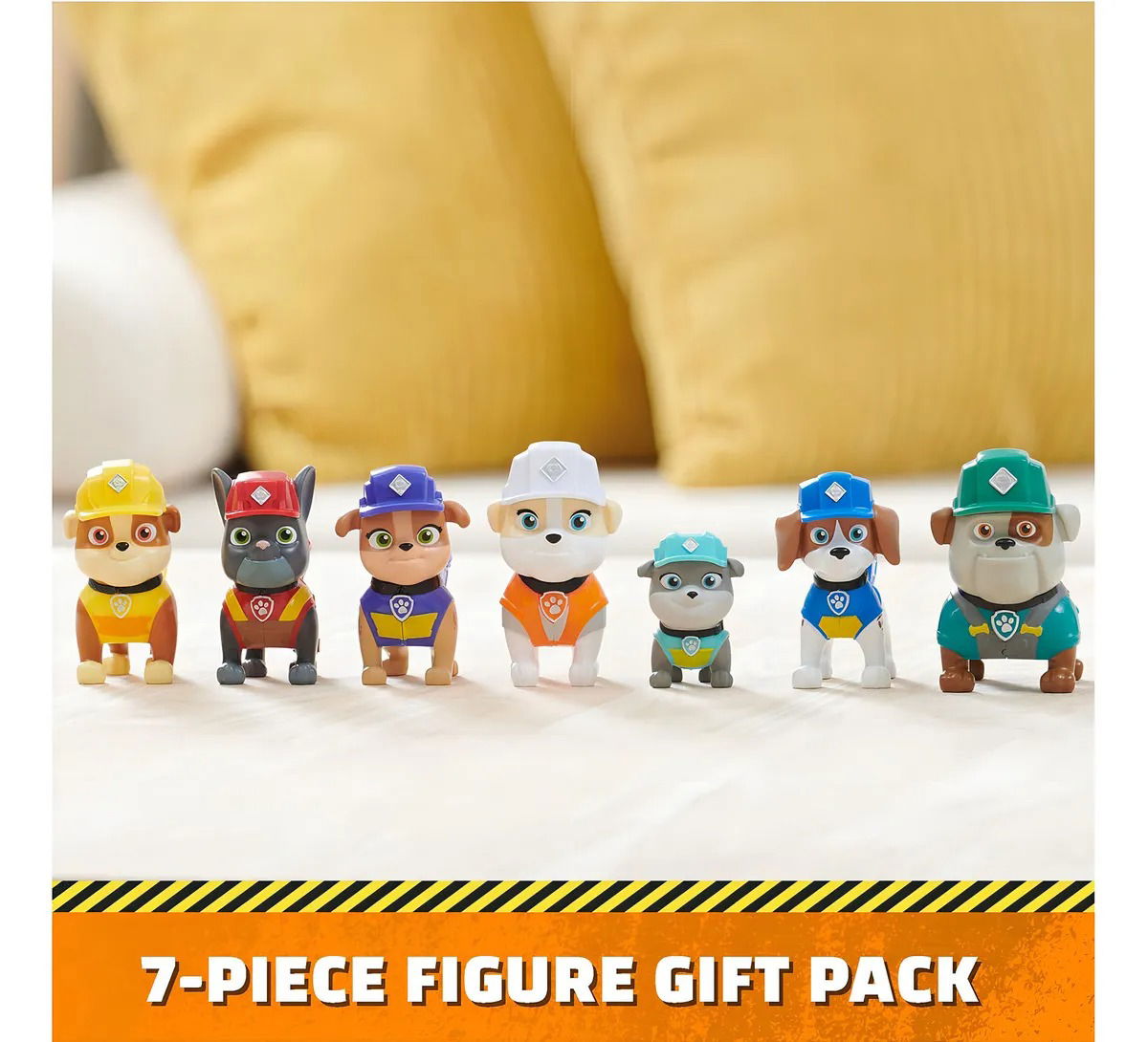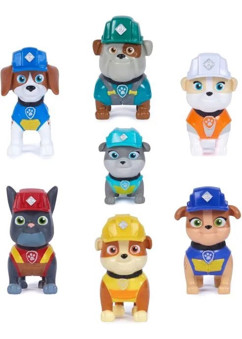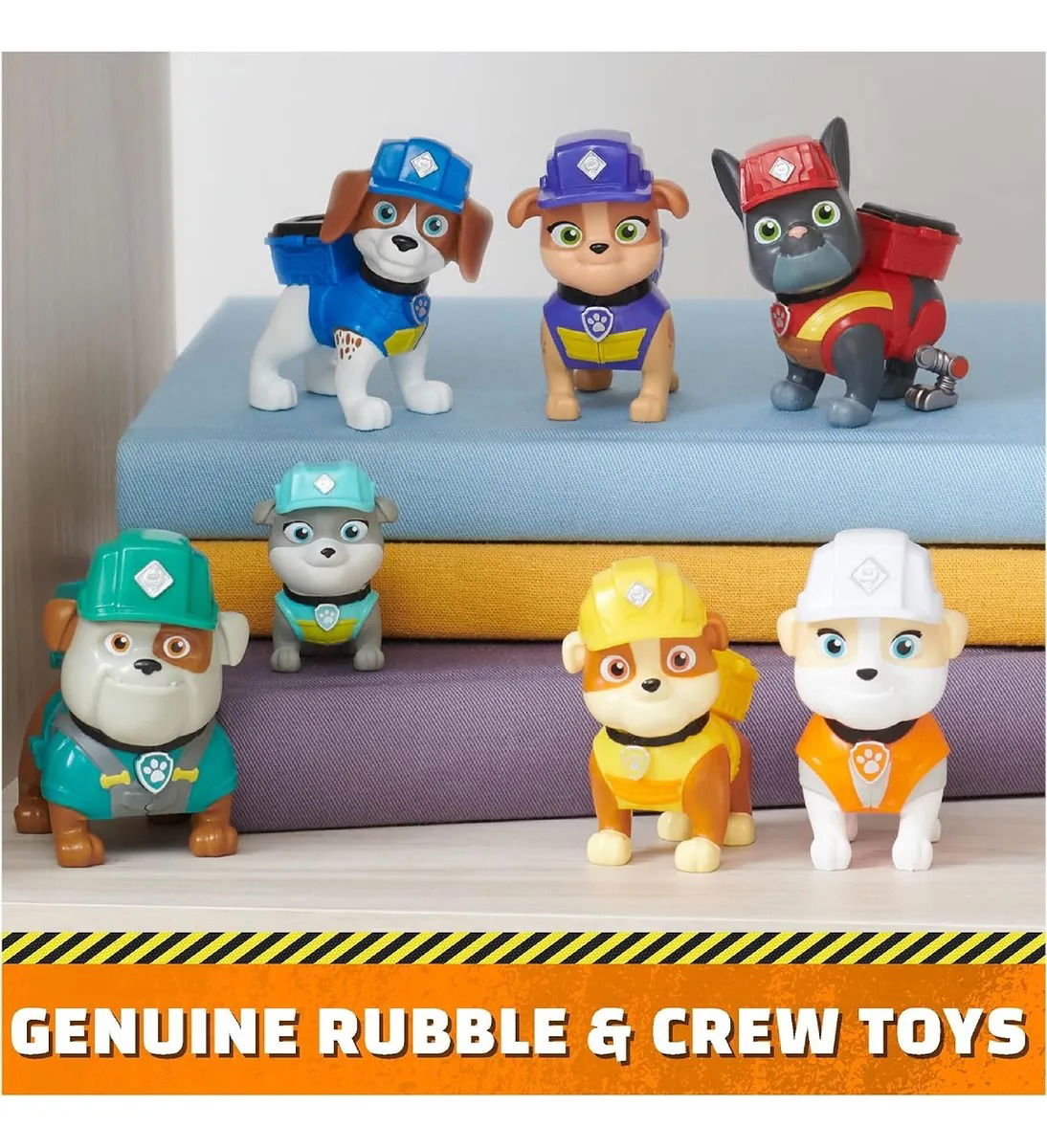 Este increíble conjunto incluye a tu cachorro favorito de la Patrulla Canina, Rubble, y su familia de cachorros de construcción Wheeler, Mix, Charger, Motor, Auntie Crane y Grandpa Gravel.