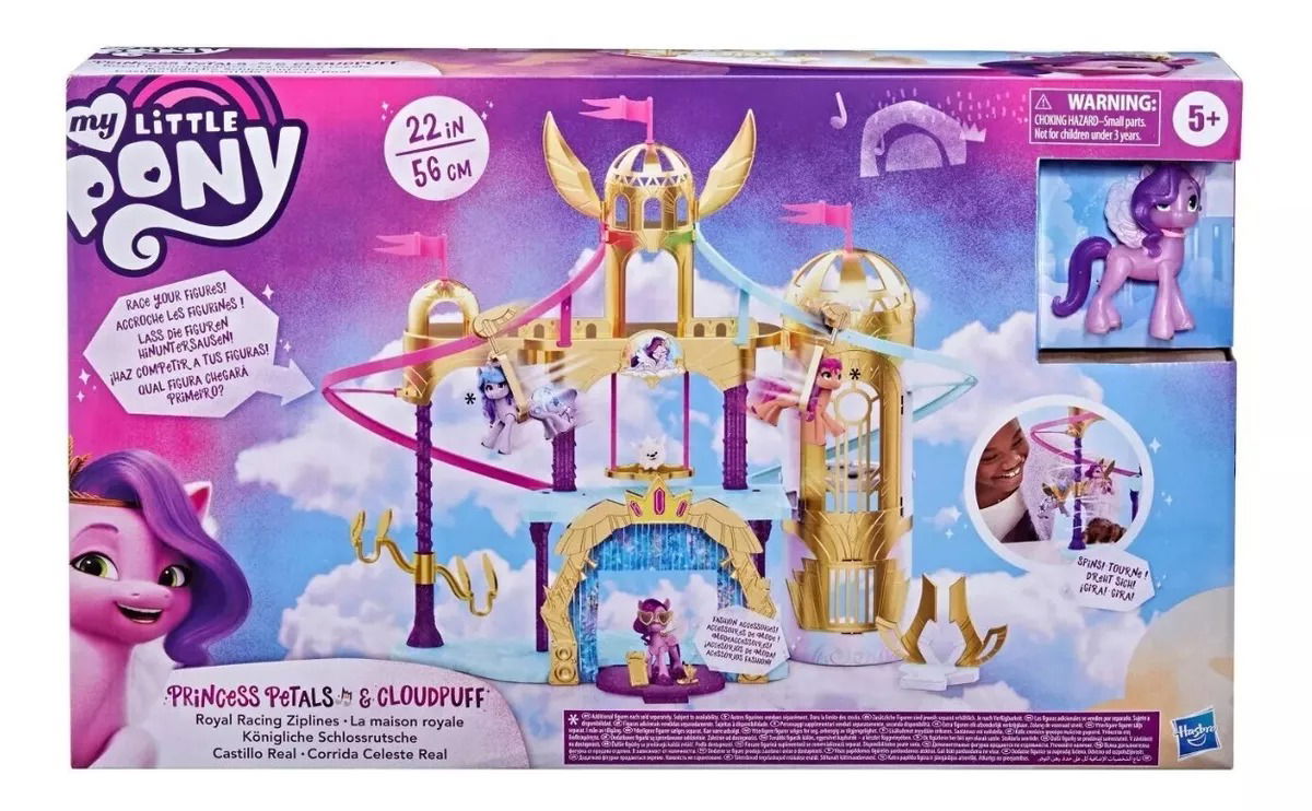 La Princesa Petals, una pony pegaso de los Altos de Céfiro. La Princesa Petals es una estrella pop con mucho estilo. Imagina que la preparas para su actuación más emocionante en el Castillo Real. Inspirado en el palacio de los Altos de Céfiro en la película My Little Pony: A New Generation, este castillo mide 56 cm de alto.