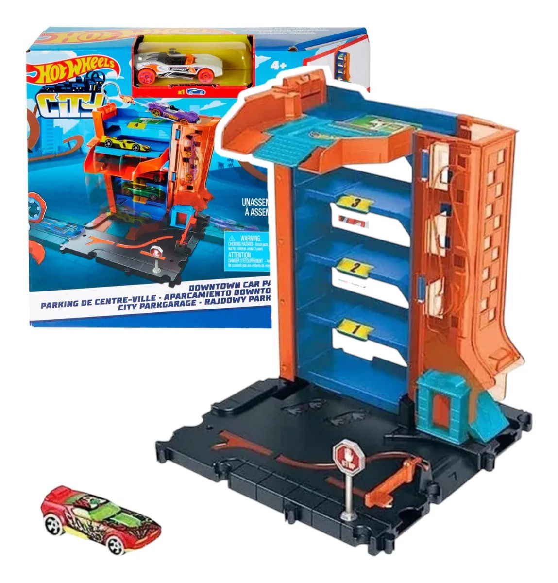 El set incluye 1 coche de juguete Hot Wheels para jugar y divertirse inmediatamente nada más sacarlo de la caja. ¡Conecta el set de juego Aparcamiento del Centro de Hot Wheels City con otros sets para construir un mundo único de diversión y aventura, con fantásticas características que aumentan la diversión!