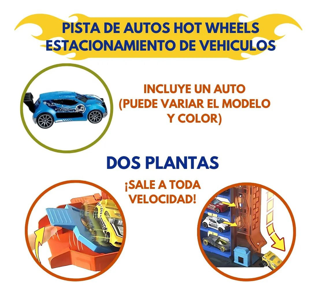 Toda ciudad necesita un estacionamiento, pero para ser tan genial como el estacionamiento de Hot Wheels City, ¡necesita características increíbles como una rampa de salida transparente, un elevador de autos y puertas móviles! Este estacionamiento tiene cuatro niveles, y cada nivel se conecta a la rampa de salida translúcida que lanza los autos a nuevas aventuras. Se conecta con otros sets de Hot Wheels mediante múltiples puntos de conexión (cada set se vende por separado) e incluye un vehículo Hot Wheels para jugar de forma divertida y creativa desde el primer momento.