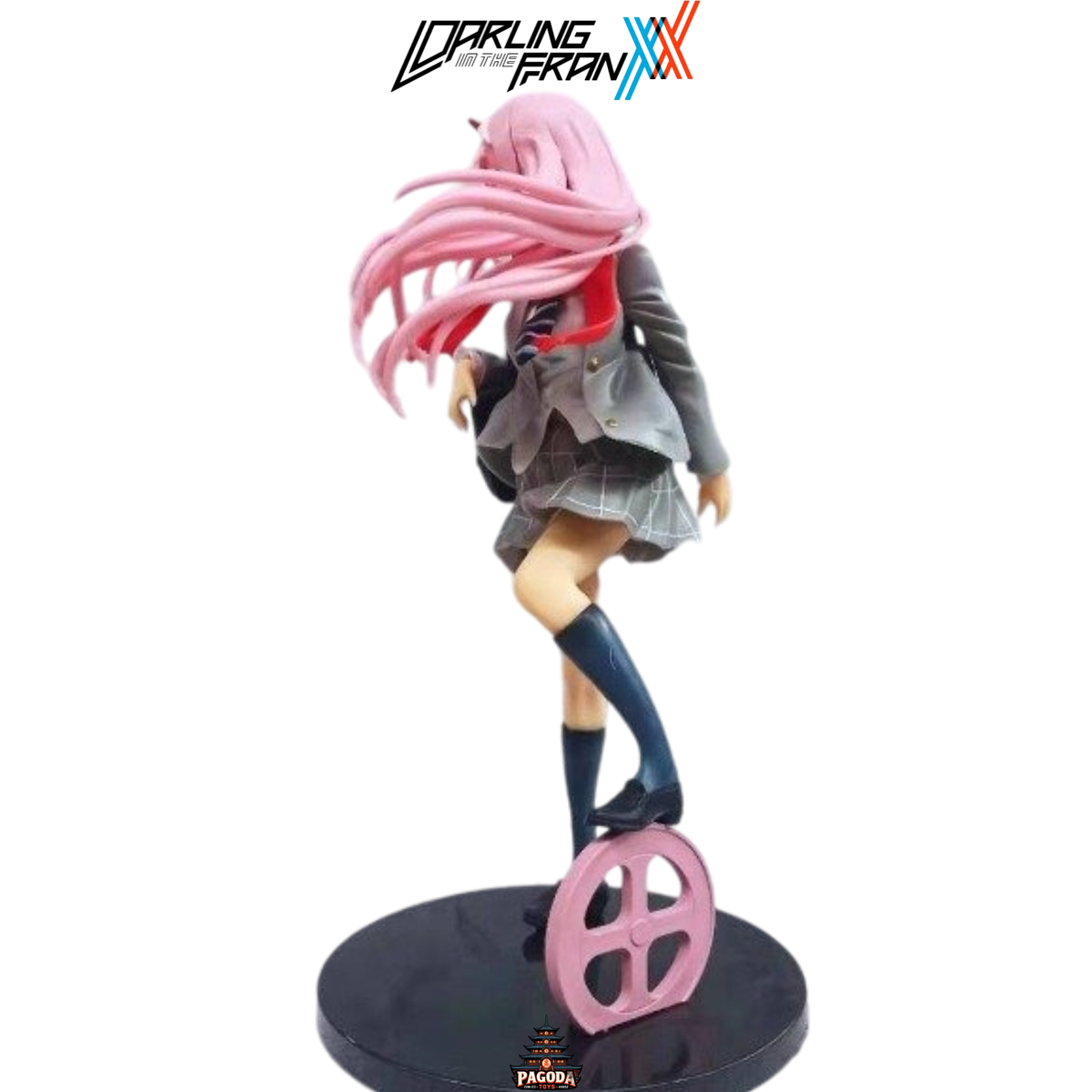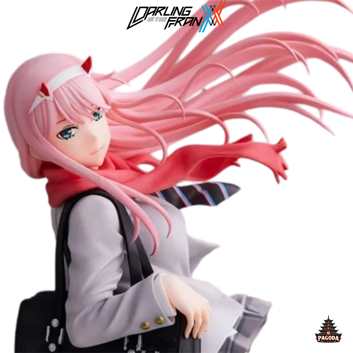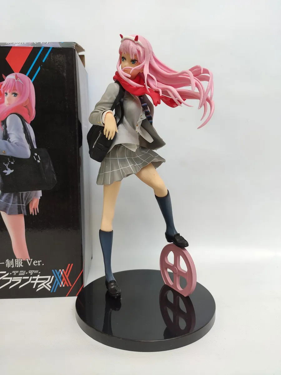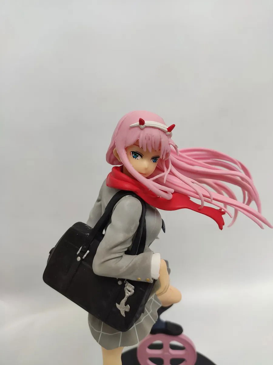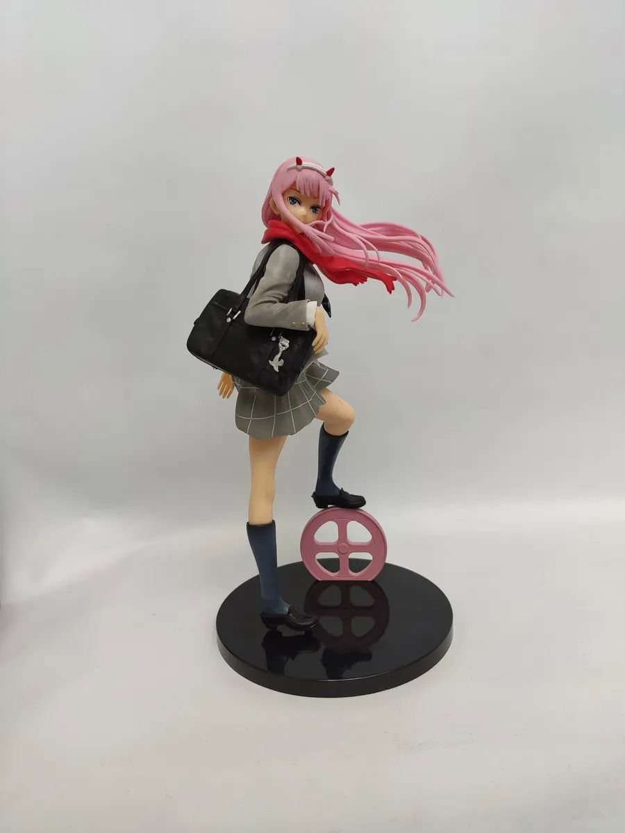 Figura de Zero Two del anime Darling in the Franxx con su uniforme escolar que se ve en el tema final del programa. Esta figura de alta calidad captura todos los detalles de la protagonista de Darling in the Franxx, desde su cabello rosa hasta su mirada cautivadora.