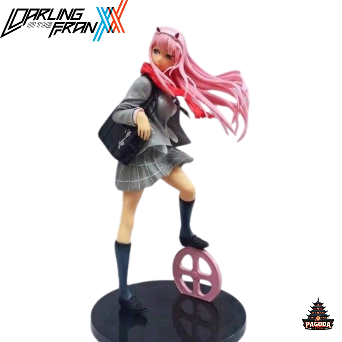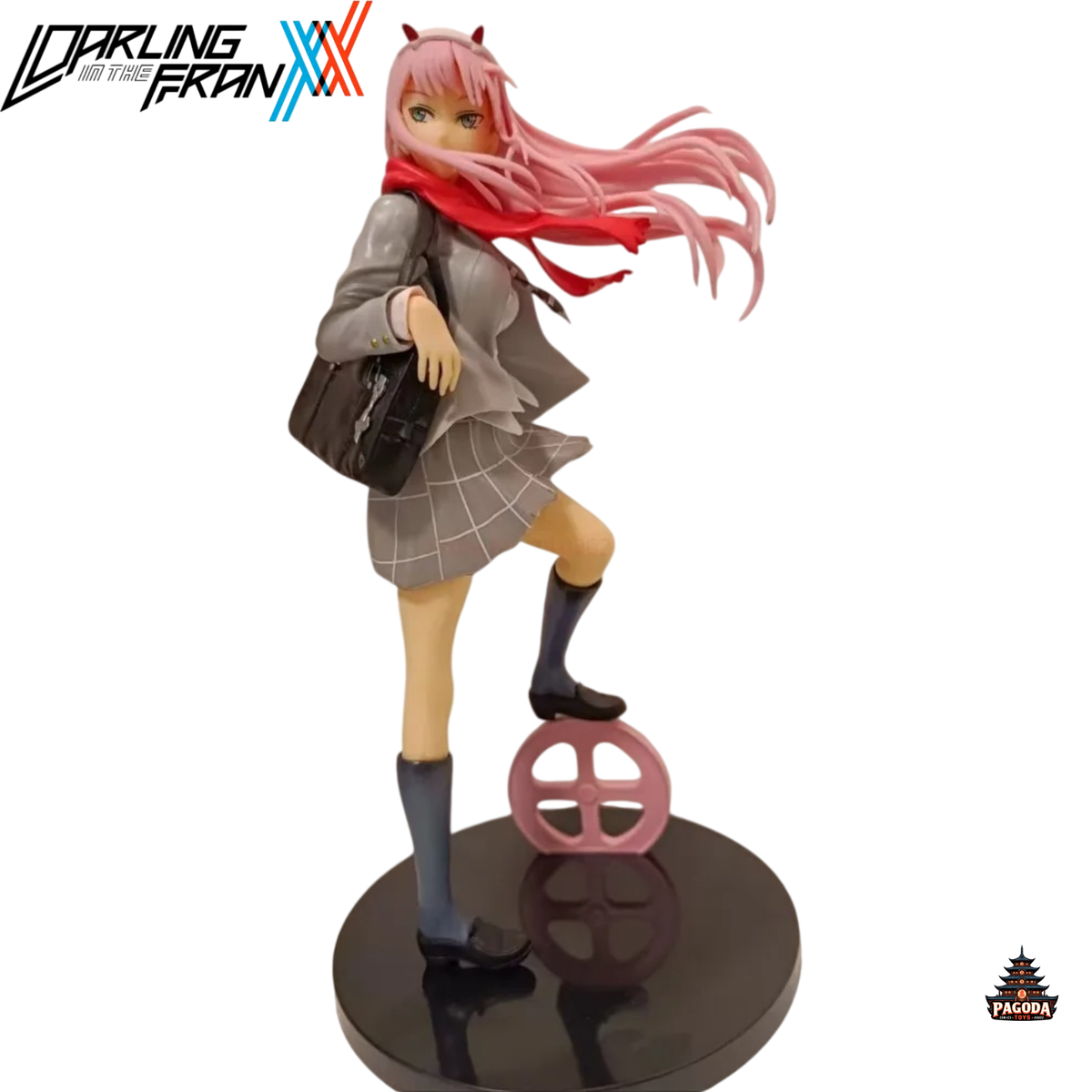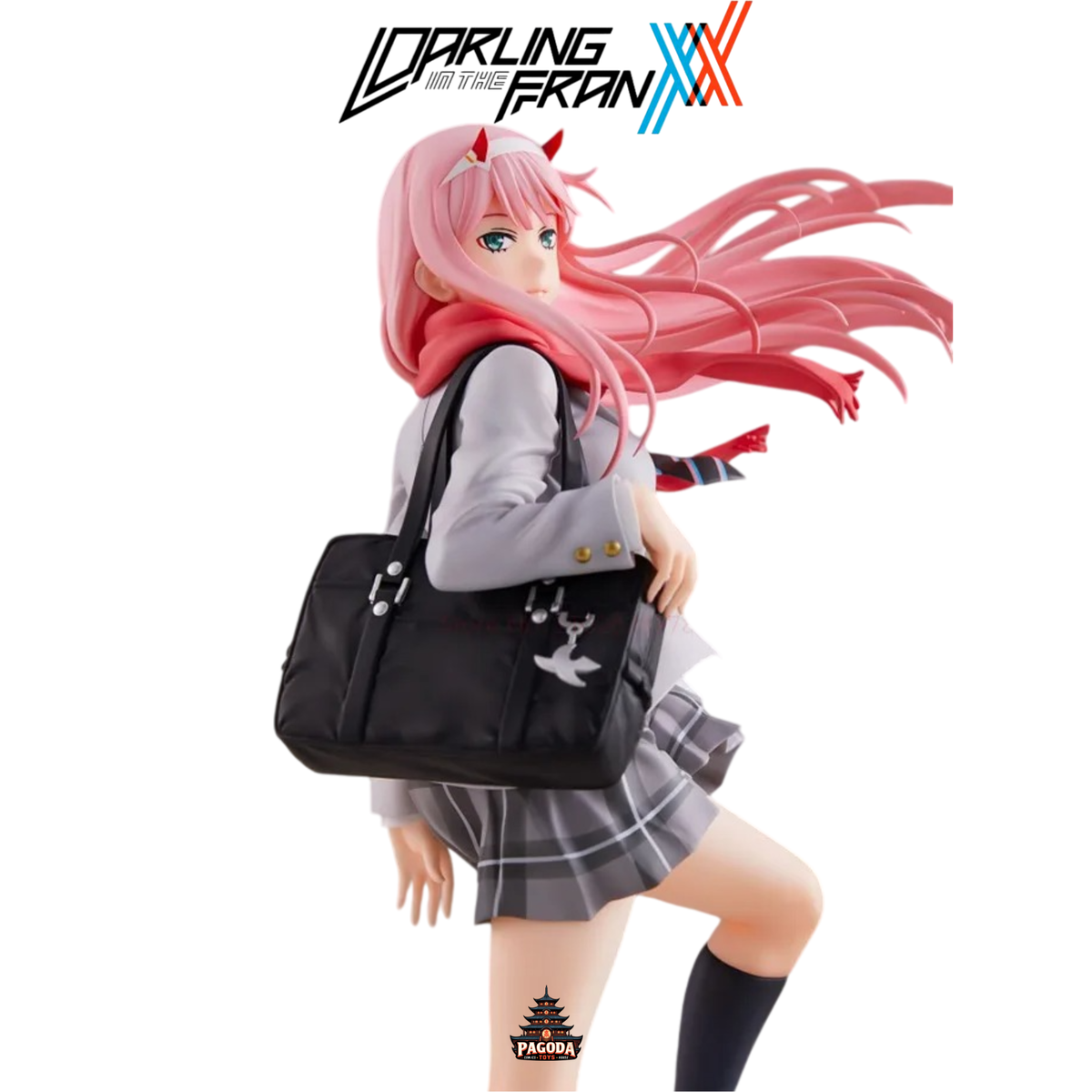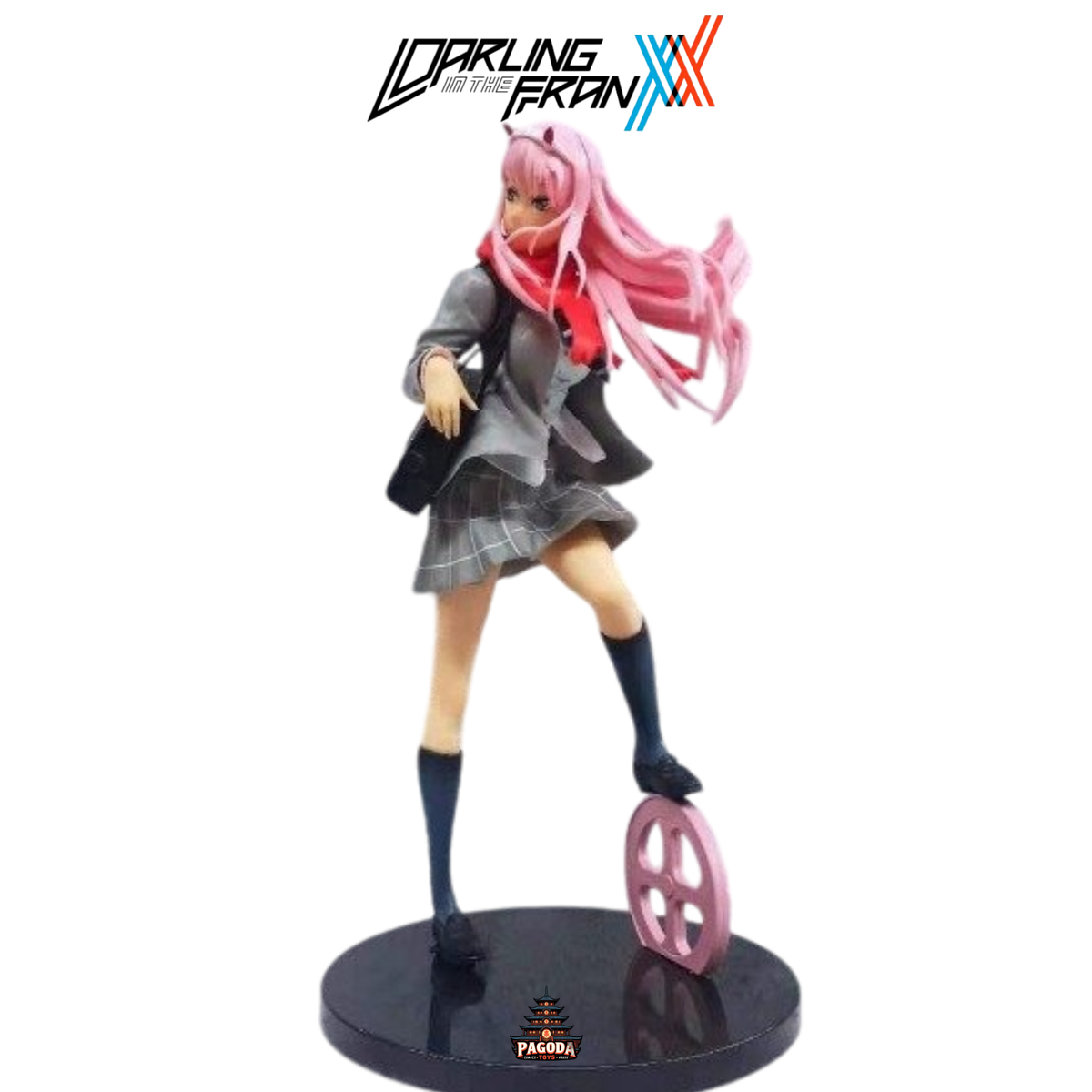 Figura de Zero Two del anime Darling in the Franxx con su uniforme escolar que se ve en el tema final del programa. Esta figura de alta calidad captura todos los detalles de la protagonista de Darling in the Franxx, desde su cabello rosa hasta su mirada cautivadora.