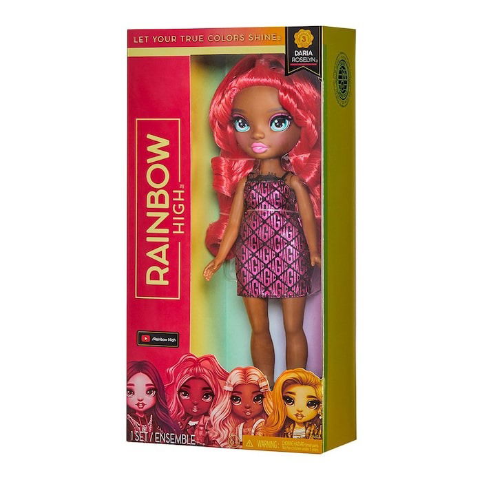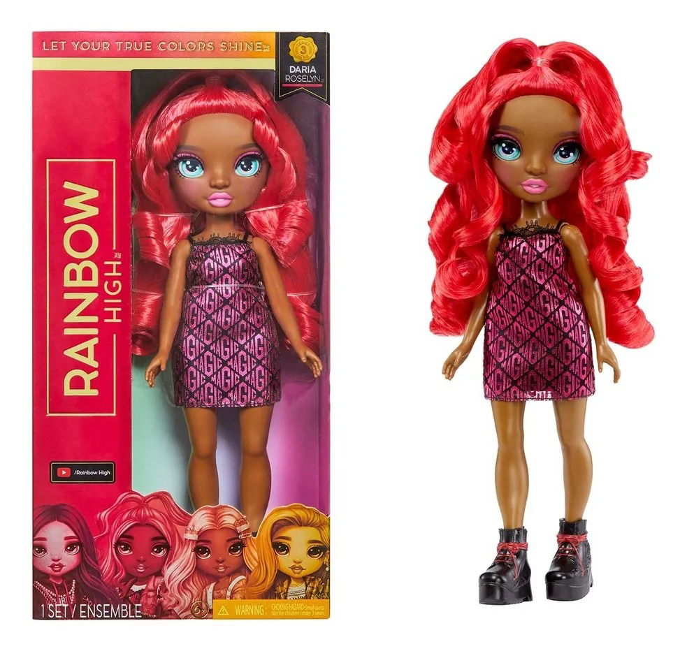 Hermosa muñeca de moda de Rainbow High, Daria Roselyn tiene un diseño único y está vestida de rosa (rosa y rojo) de pies a cabeza. Ella tiene maravillosas características detalladas en su vestuario, cabello hermoso, pestañas largas y ojos de cristal. Colecciona el arco iris de todas las hermosas muñecas de moda Rainbow High. Daria es dulce como una flor con una moda espinosa. Daria se centra en la música, por lo que está preparada para subir al escenario y cantar a pleno pulmón.