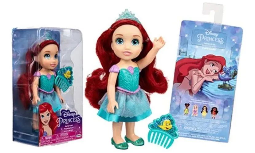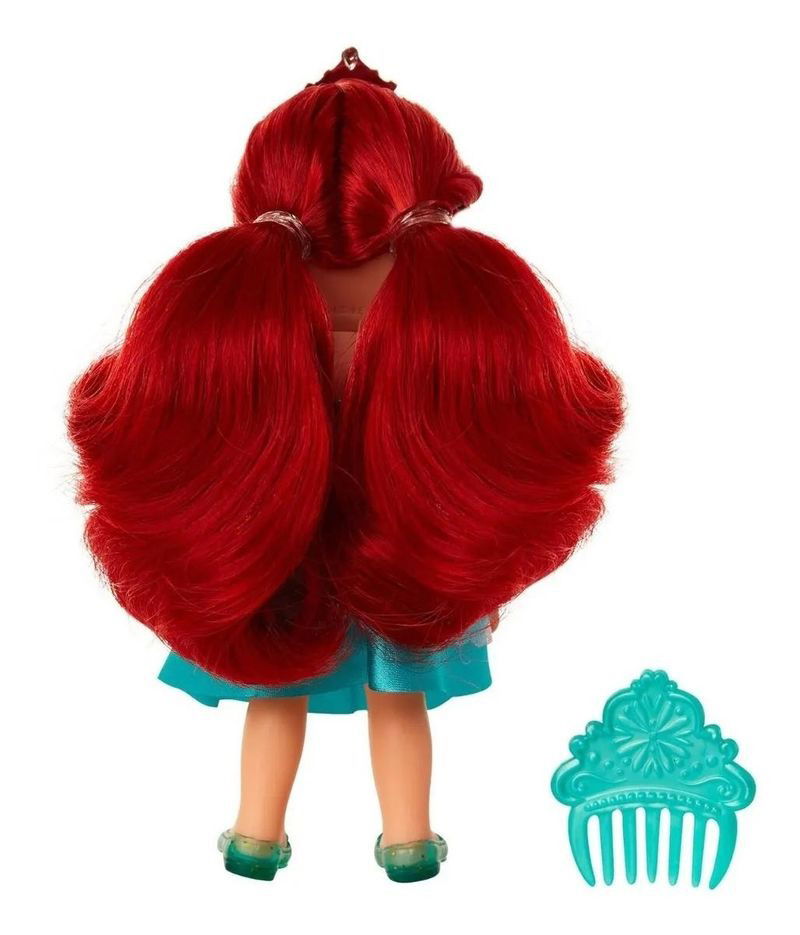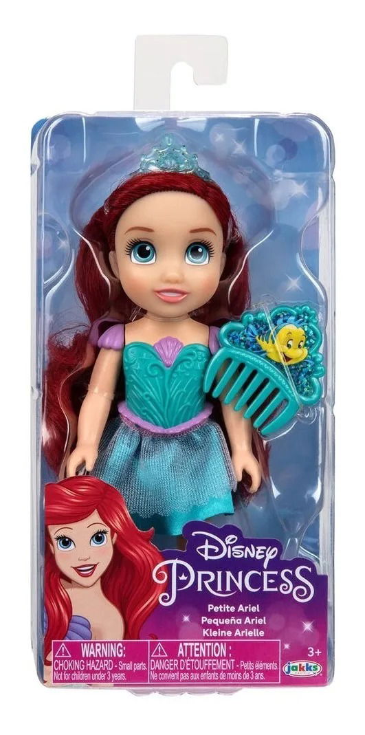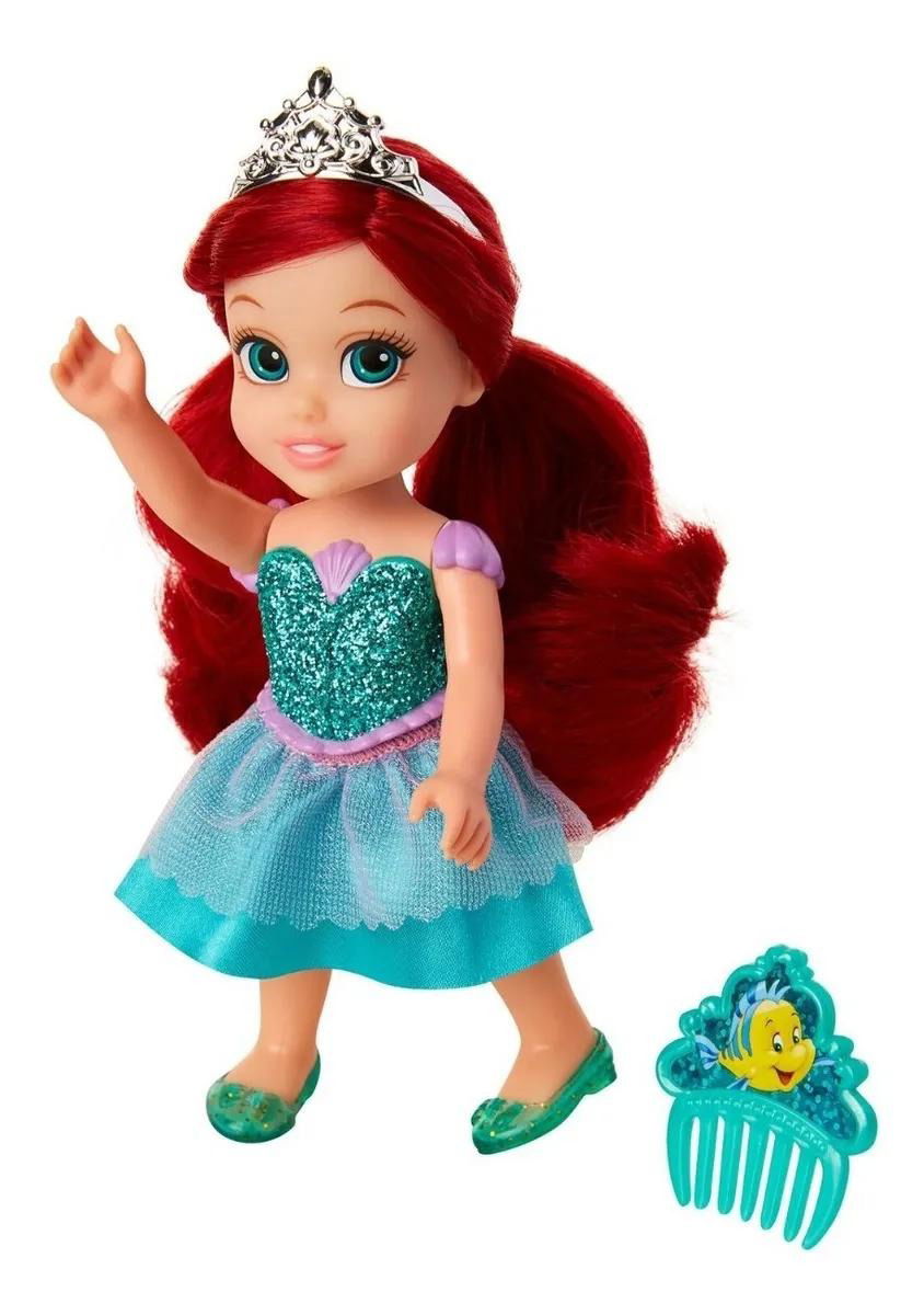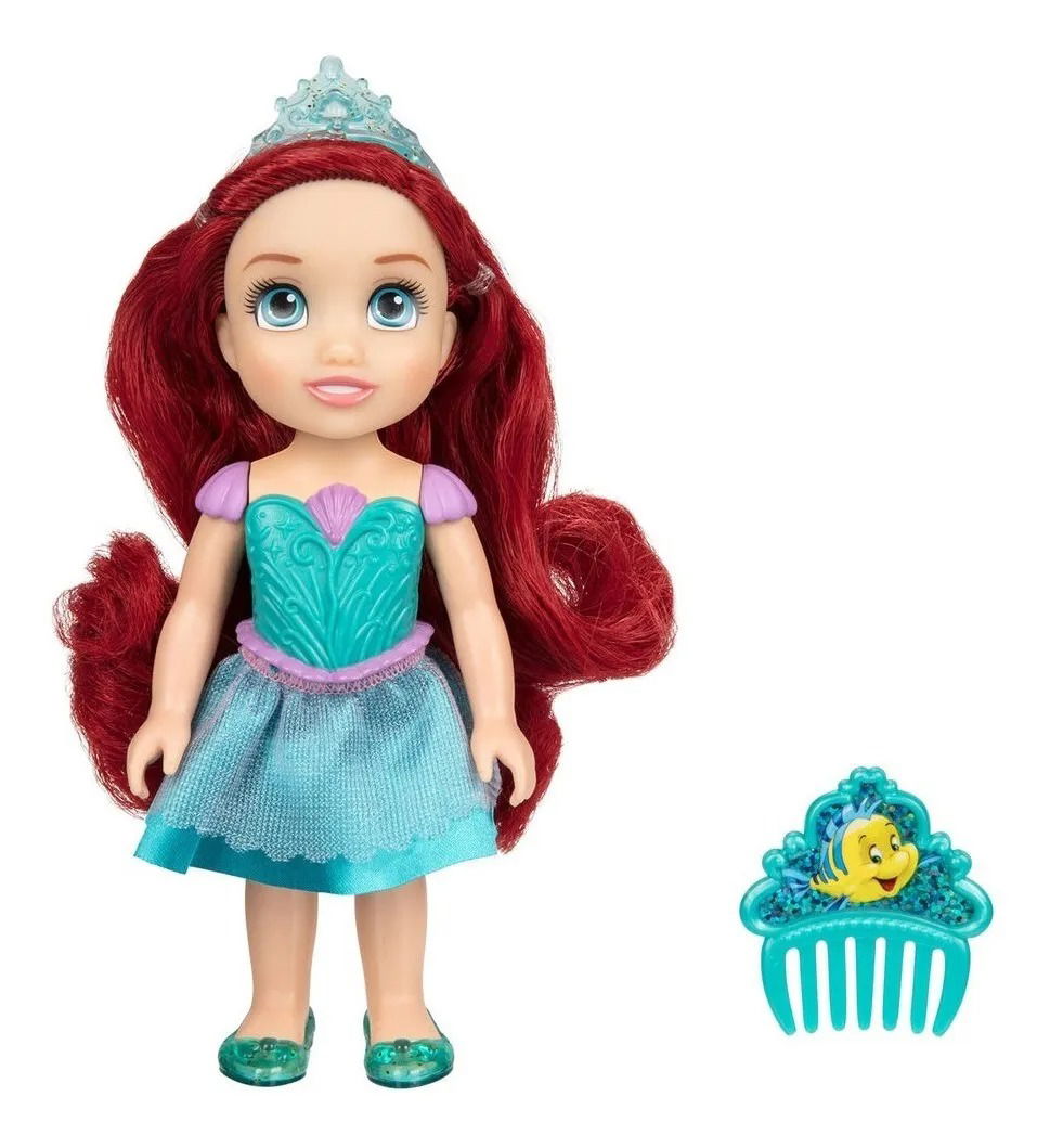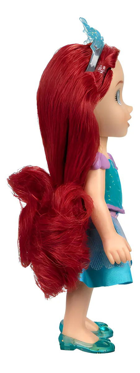 Explora tus amistades submarinas con esta muñeca Pequeña Ariel, vestida con su falda de sirena, zapatos y tiara. ¡Recrea tus momentos favoritos de la película con esta encantadora muñeca y peine!