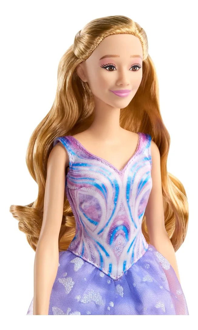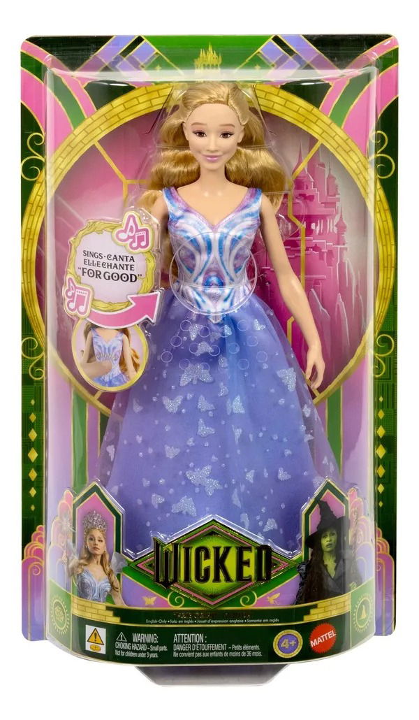 Glinda de Wicked, una muñeca con uno de sus looks más especiales, una divertida función que le permite cantar una de sus canciones preferidas y muchas más sorpresas para los fans. Regocíjate en el poder de la icónica escena de “Wicked: For Good” al apretar el botón de su torso para escuchar un fragmento de la versión inglesa de la canción “For Good”. La muñeca Glinda brilla con un vestido añil con motivos de mariposas, fiel a la película, además de con una larga y brillante melena rubia para jugar y exhibir sin parar. ¡Podrás exponerla y jugar con ella durante horas! Recrea los momentos de la película una y otra vez con esta muñeca de Glinda, que cuenta con 5 puntos de articulación.