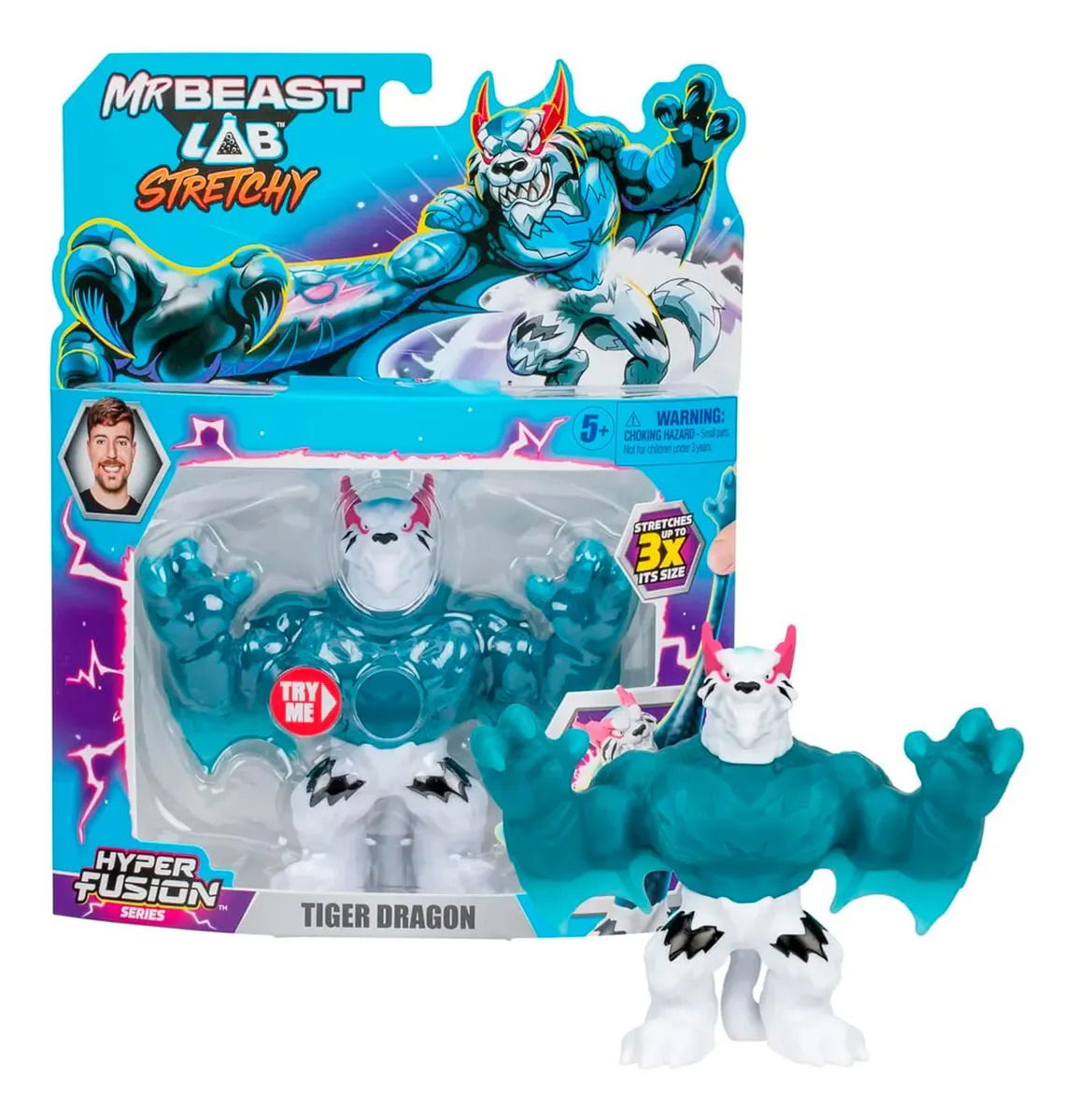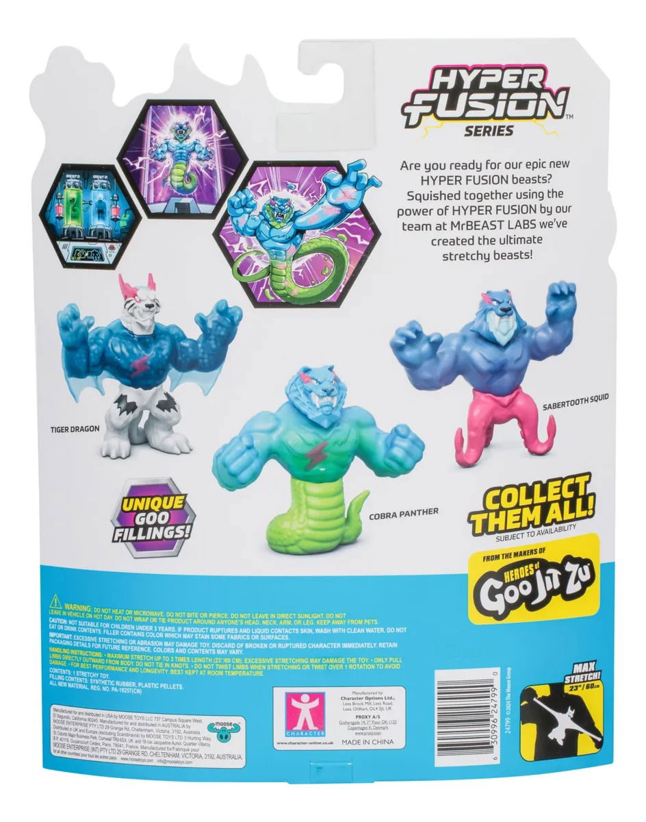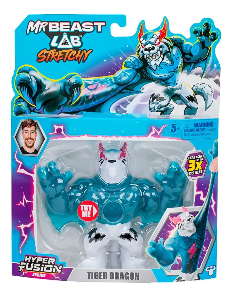 Estirable hasta 3 veces su tamaño. . Figuras De Acción Moose Hyper Fusion Mr. Beast Tiger Dragon hiperextensible, de Hyper Fusion 13 Cm.