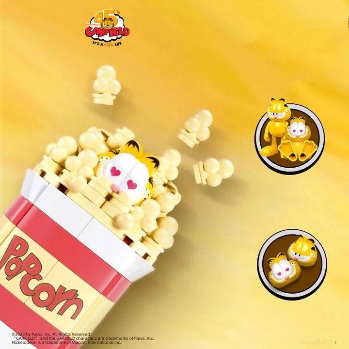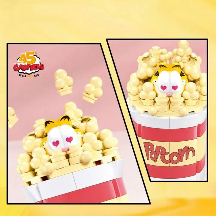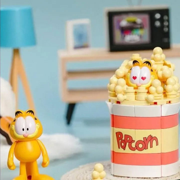 Piezas: 104 bloques de ABS de alta calidad Edad recomendada: a partir de 6 años Figura incluida: Garfield, con diseño detallado y articulado +cabeza con ojos de corazón. Instrucciones: manual detallado para facilitar el ensamblaje.