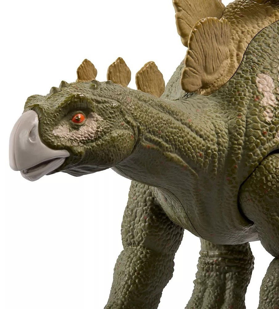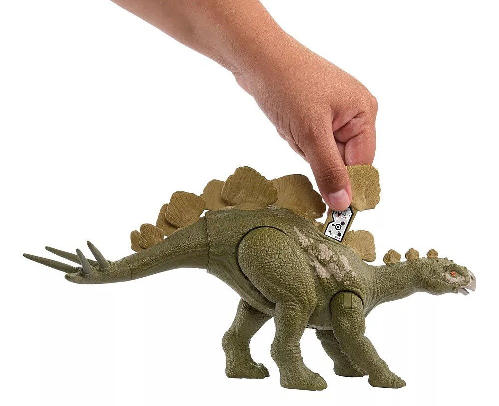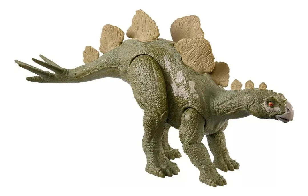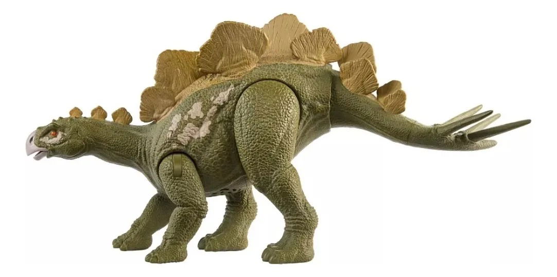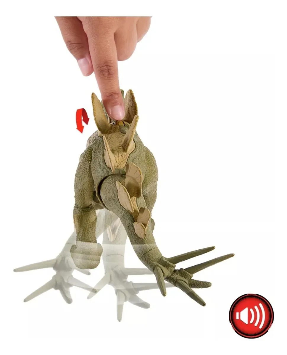 Jurassic World Dinosaurio Rugido Salvaje Hesperosaurus' con movimiento de ATAQUE y sonidos para un emocionante juego de acción. Cada acción es específica de la serie, incluyendo coletazos, golpes laterales y cabezazos.
