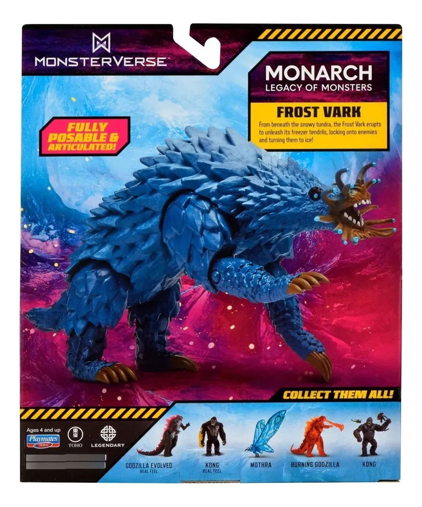 Con 12,7 cm, la figura de Frost Vark reinará en cualquier espacio de exhibición o juego. Con múltiples puntos de articulación, Frost Vark está listo para la acción, para que puedas recrear tus escenas favoritas de sus épicas batallas de la exitosa serie de televisión Monarch: Legacy of Monsters.