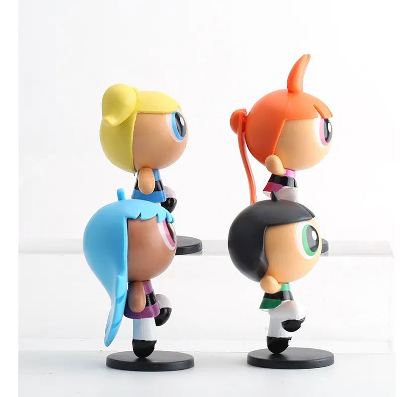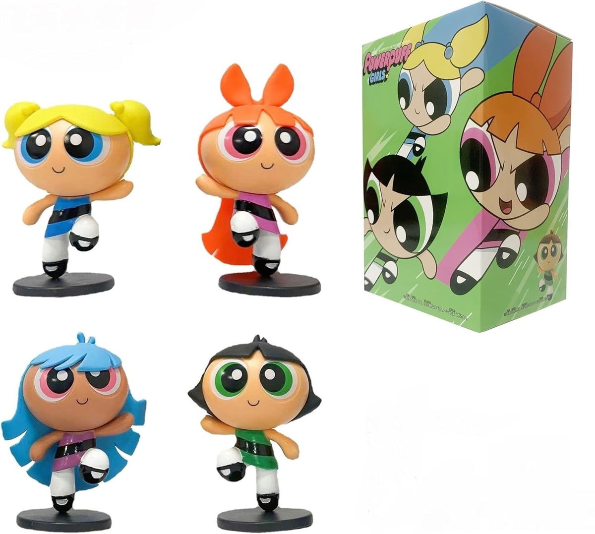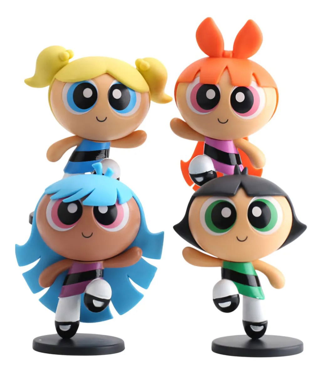 Colección X 4 Figuras Pequeñas Chicas Superpoderosas PVC de alta calidad. Burbuja, Bombón, Bellota y Bliss. Colección ideal para fans y coleccionistas de la franquicia Chicas Superpoderosas. Tamaño: de 9-10 cm aprox. (base negra) Con un total de 4 piezas en la línea de Figuras.
